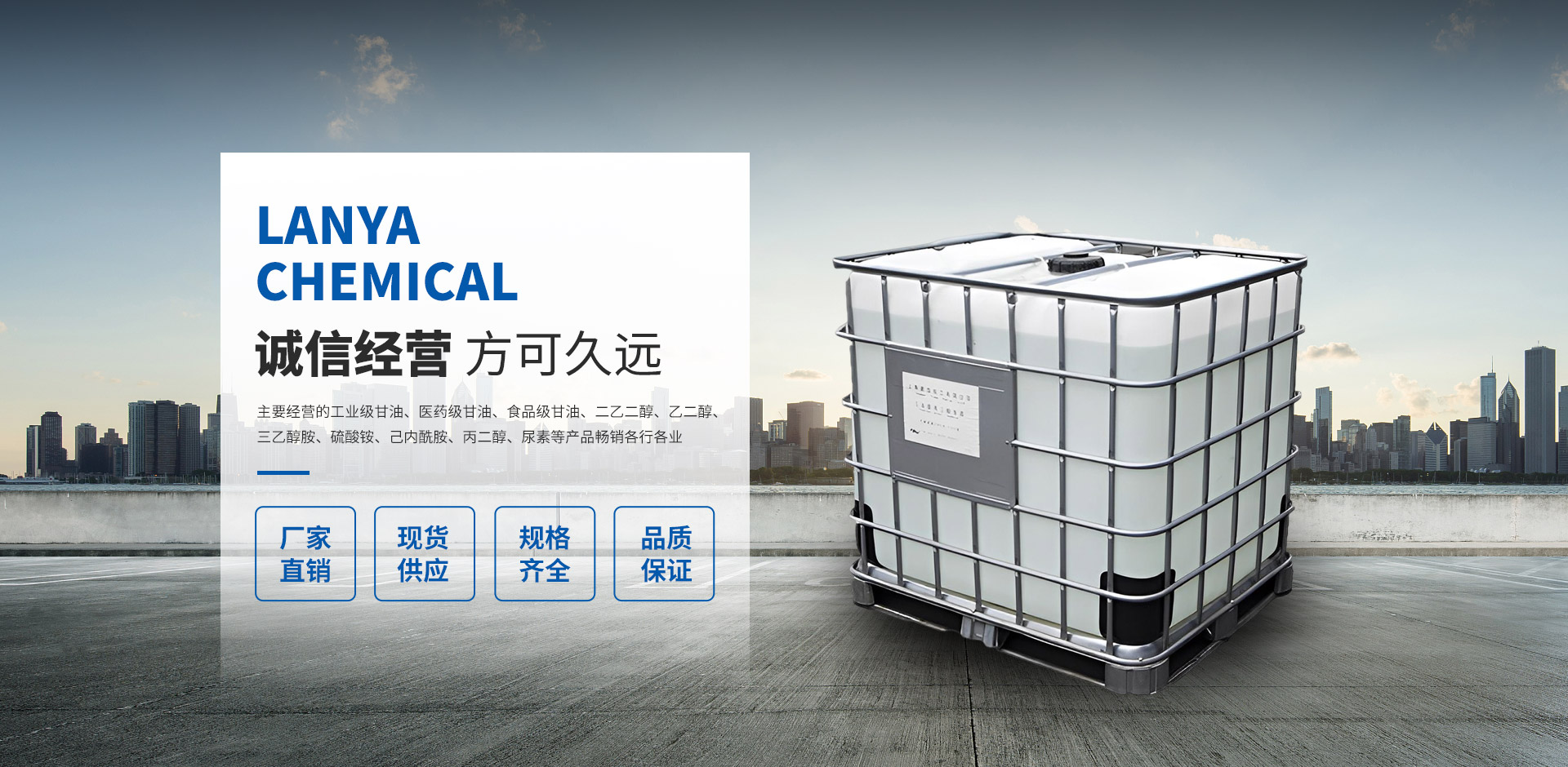 常州藍亞新材料科技有限公司是一家集技術研發、技術服務、生產加工、經銷批發為一體的化工經營企業,擁有完整、科學的質量管理體系,以雄厚的實力、低廉的價格,優良的服務與多家企業建立了長期的合作關系。我們有很廣泛的商品信息網絡,合作伙伴遍及世界各地,我們在“質量為先”的經營理念指導下,經過全體員工的不懈努力,以經取得了令人矚目的成績,并擁有一支業務精通、操作能力強的骨干隊伍。公司實力雄厚,重信用、守合同、保證產品質量,產品品種齊全、價格合理,以多品種經營特色和薄利多銷的原則,贏得了廣大客戶的信任。  藍亞化工,主要經營的工業級甘油、醫藥級甘油、食品級甘油、二乙二醇、乙二醇、三乙醇胺、硫酸銨、己內酰胺、丙二醇、尿素等產品暢銷各行各業,在各大企業當中享有較高的地位。公司與多家加工廠、零售商和代理商建立了長期穩定的合作關系。本公司的二乙二醇、工業級甘油、三乙醇胺等液體散裝有機化學品品種齊全、價格合理,廣泛用于各行各業?! 」疚挥谀壳爸袊呋盍Φ拈L江三角洲地區有發展潛力的城市—常州,地理位置得天獨厚,水陸交通便利。